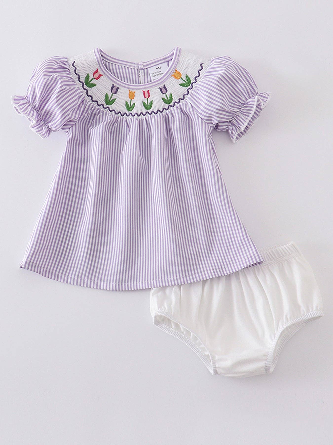 This beautiful Blue Stripe Flowers Smocked Baby Set is perfect for your little one! The delicate smocked design and vibrant blue stripes are sure to make your baby stand out. Made with soft, high-quality fabric, this set is both stylish and comfortable. Give your baby the gift of fashion and comfort with this adorable set!