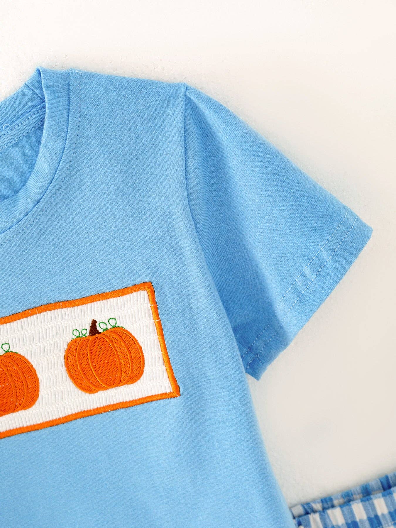 Get your little guy ready for Halloween with our Boys Halloween Smocking Embroidered Cotton Plaid set! Made with comfortable and durable cotton, this set features intricate smocking and embroidery for a festive touch. Perfect for any Halloween event, this set will keep him stylish and cozy all night long.
