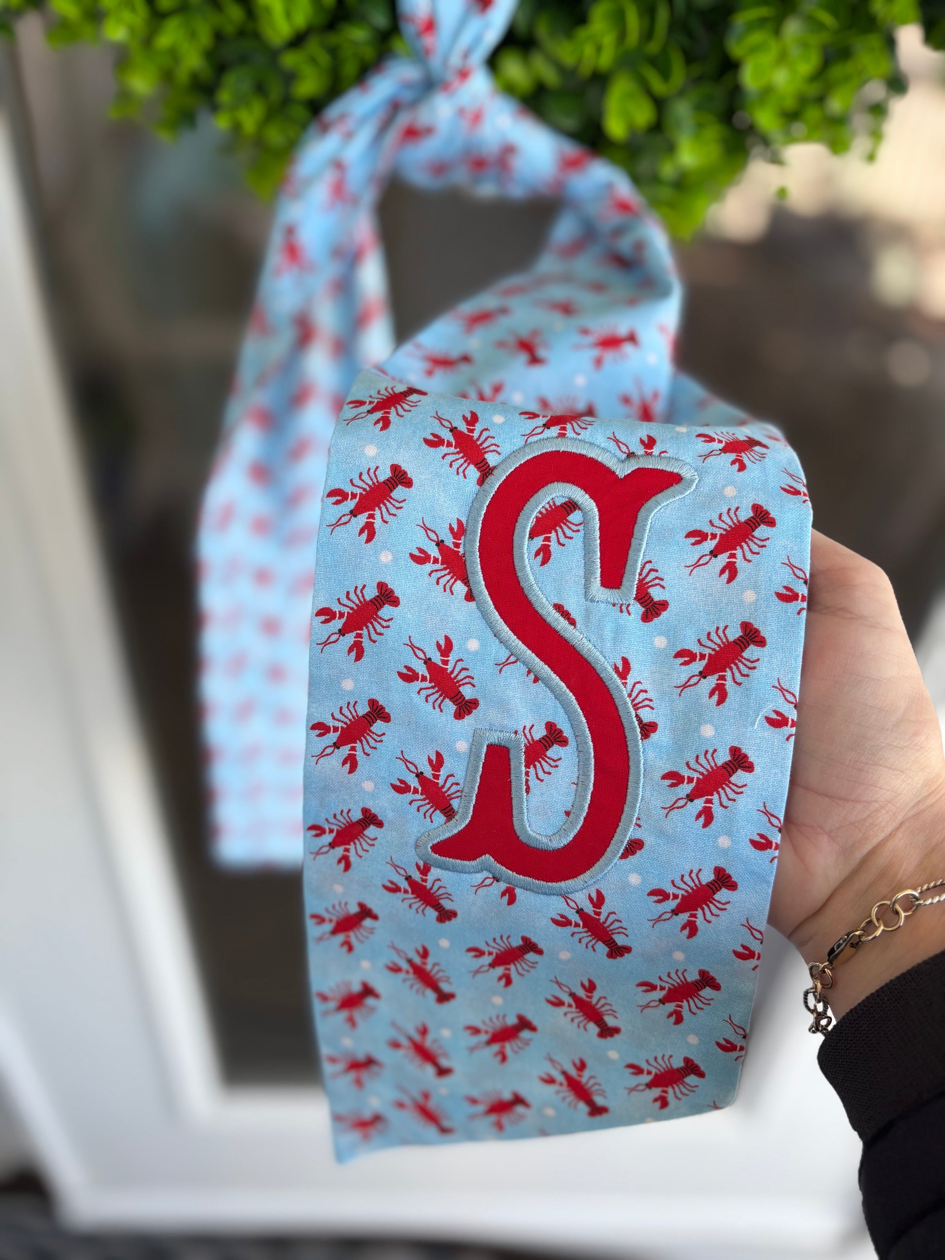 Our low country wreath sash is made with extra length measuring 60x5 and from cotton. Perfect for the summer!