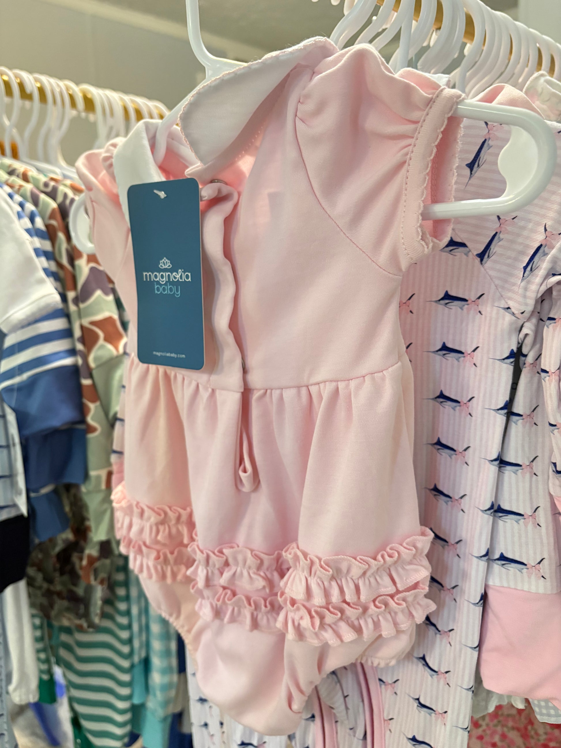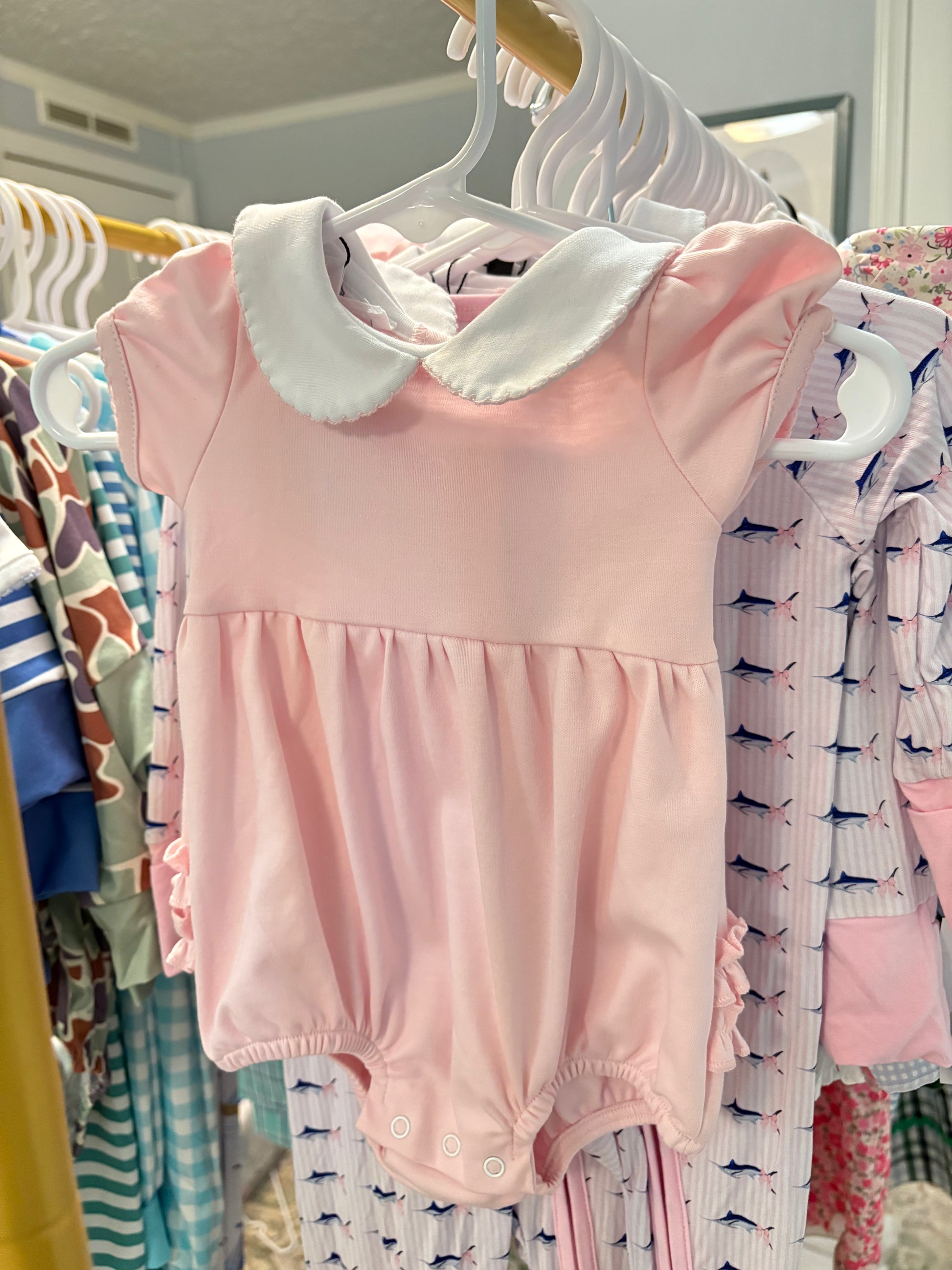 This bubble is perfect for your baby girl with its adorable pink color and playful ruffle collar. Made with high-quality materials, it is both comfortable and stylish. Dress your little one in the sweet and charming Essentials Solid Collared Ruffle Bubble in pink.
