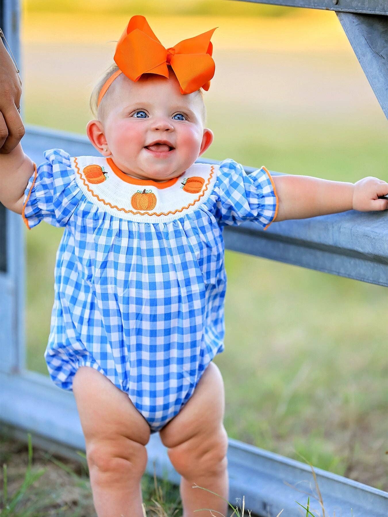 Get ready for Halloween with our Girls Woven Smocked Embroidered Plaid Romper! This adorable romper features a unique smocked design and intricate embroidery, making it perfect for your little one to wear during all the spooky festivities. Made with high-quality materials for comfort and durability.