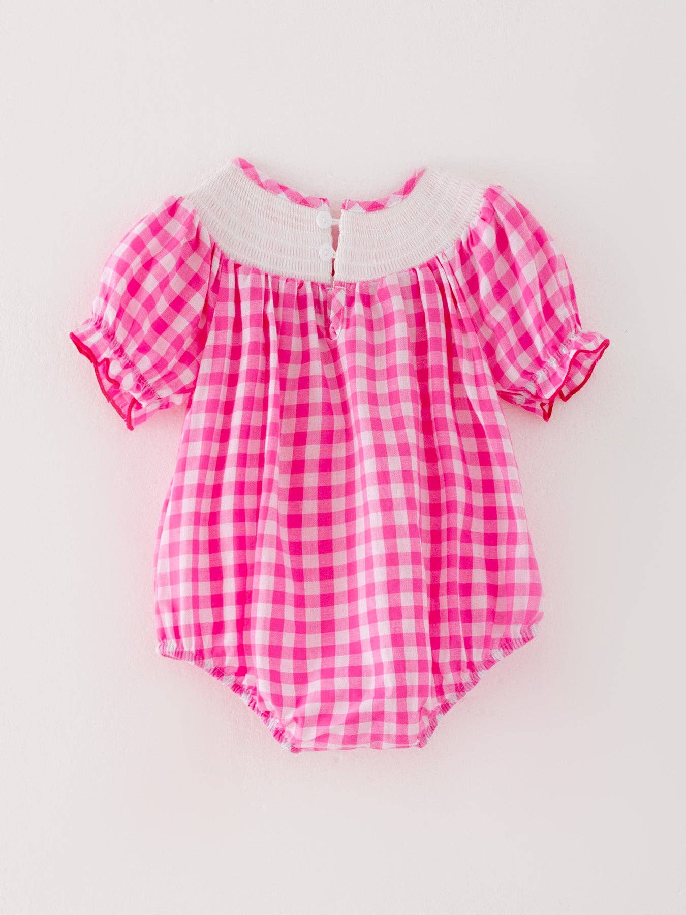 Dress your little one in this adorable Halloween Pink Baby Girls Woven Smocked Embroidered Plaid Romper. The woven smocked design and embroidered details add a touch of elegance, while the plaid pattern and Halloween theme make it perfect for the holiday season. Your little girl will look cute and festive in this romper!