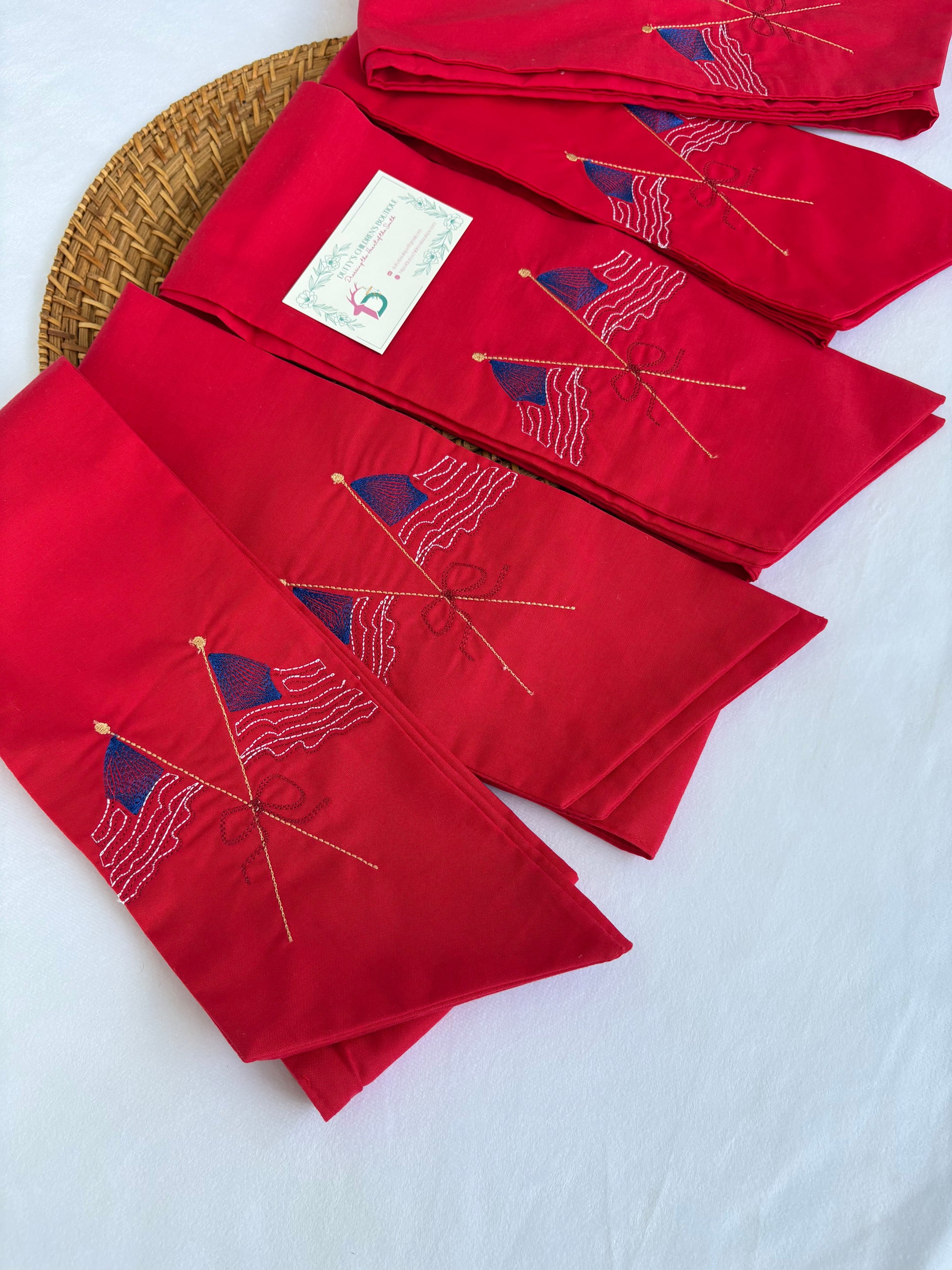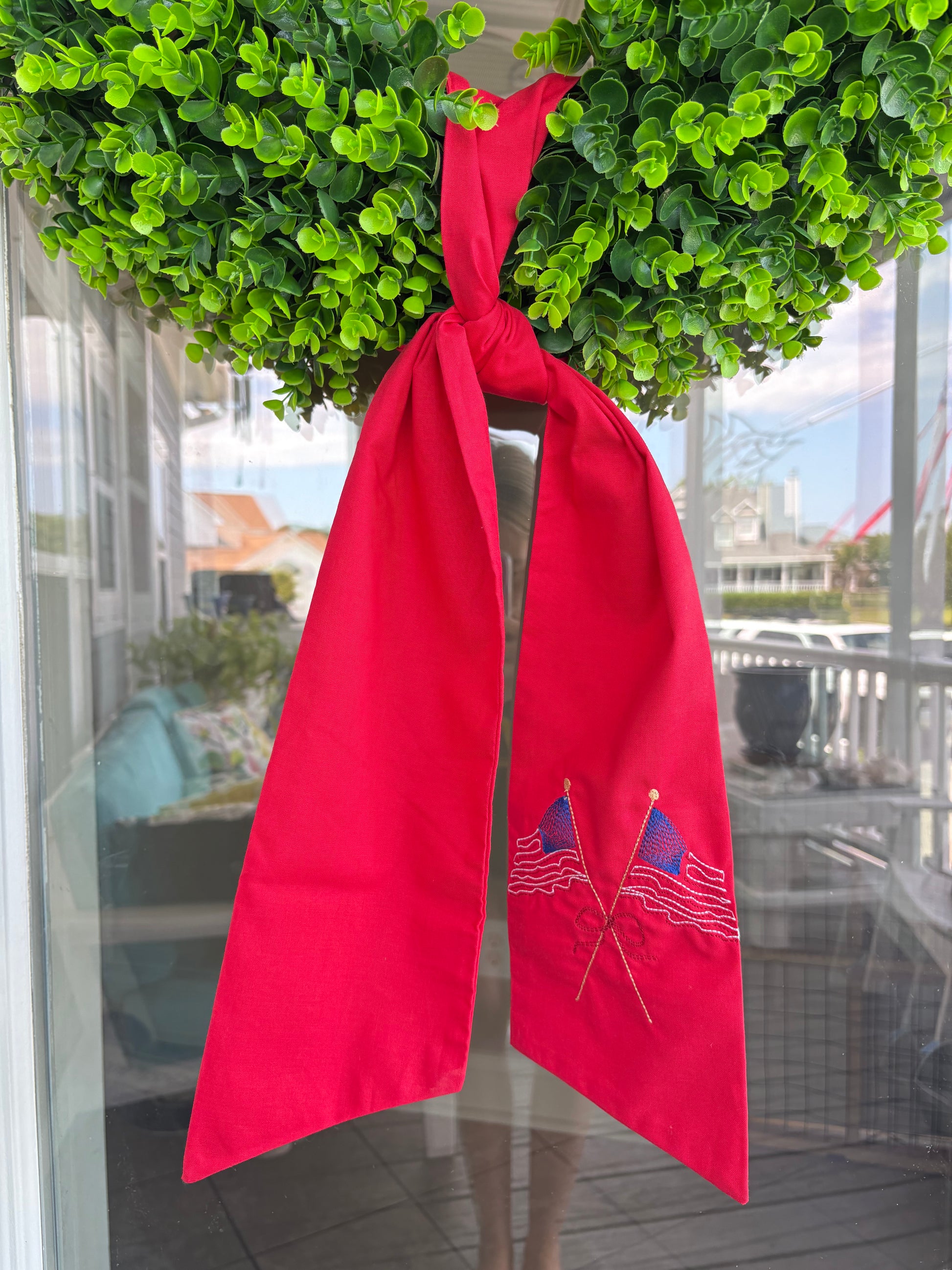 Our American flag wreath sash is already embroidered and ready to ship—perfect for your last-minute Memorial Day or July 4th décor! It measures 50x5 inches and is ready to go as is!