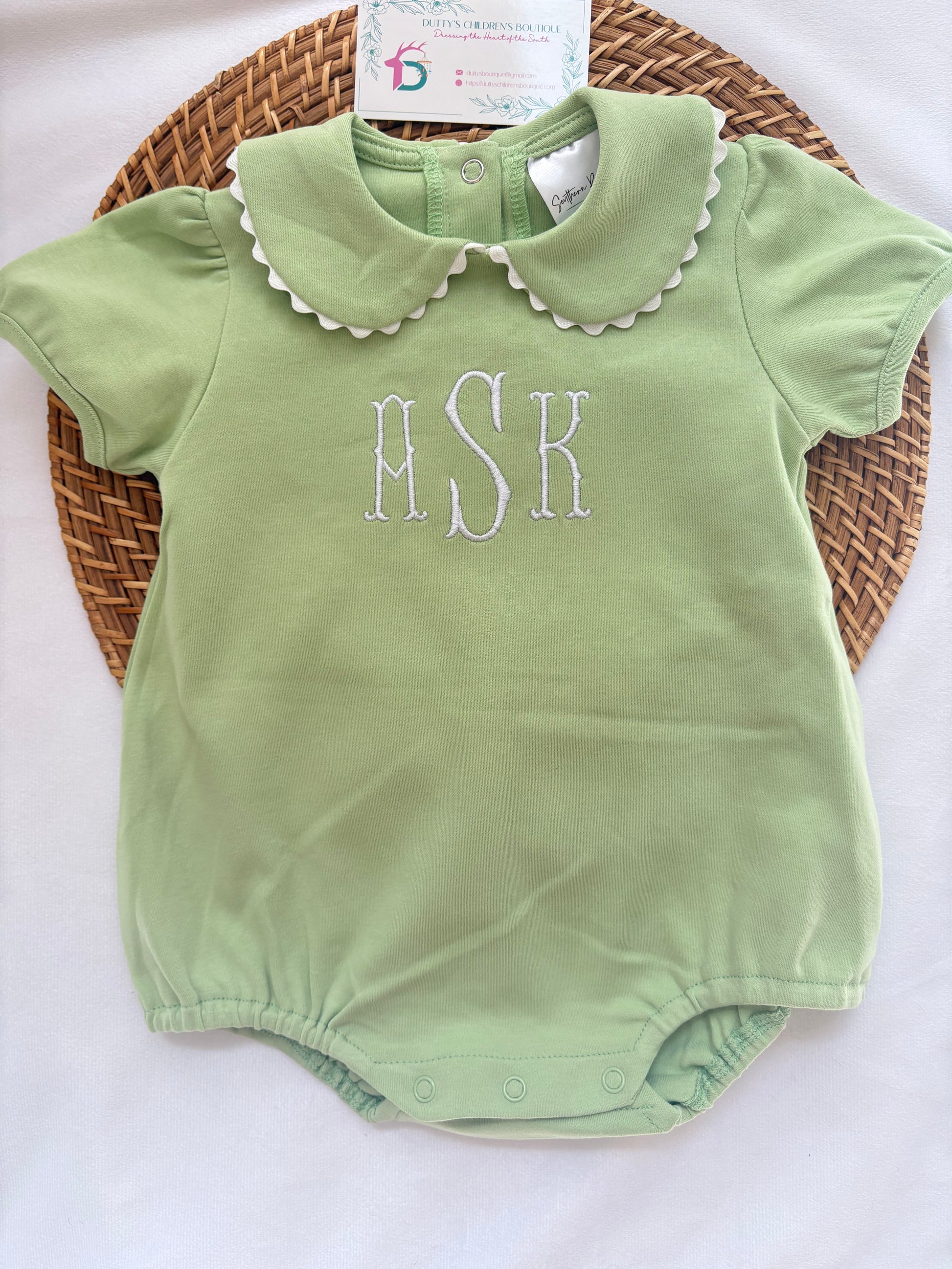 NEW light green ricrac collared bubble! Details include ricrac collar with Sweet little bubble sleeves. Perfect for any occasion and any event!